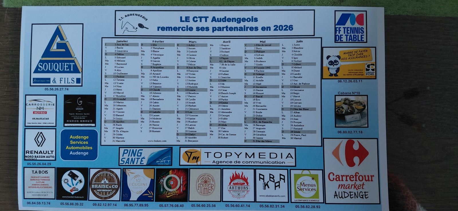 Le club remercie nos partenaires pour cette saison